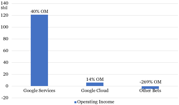 Other Bets: includes businesses in various stages of development, ranging from those in the R&D phase to those that in the beginning stages of commercialization. The most notable business here is Waymo, its fully autonomous, paid ride-hailing service that is operating in five U.S. cities as of November 28th.