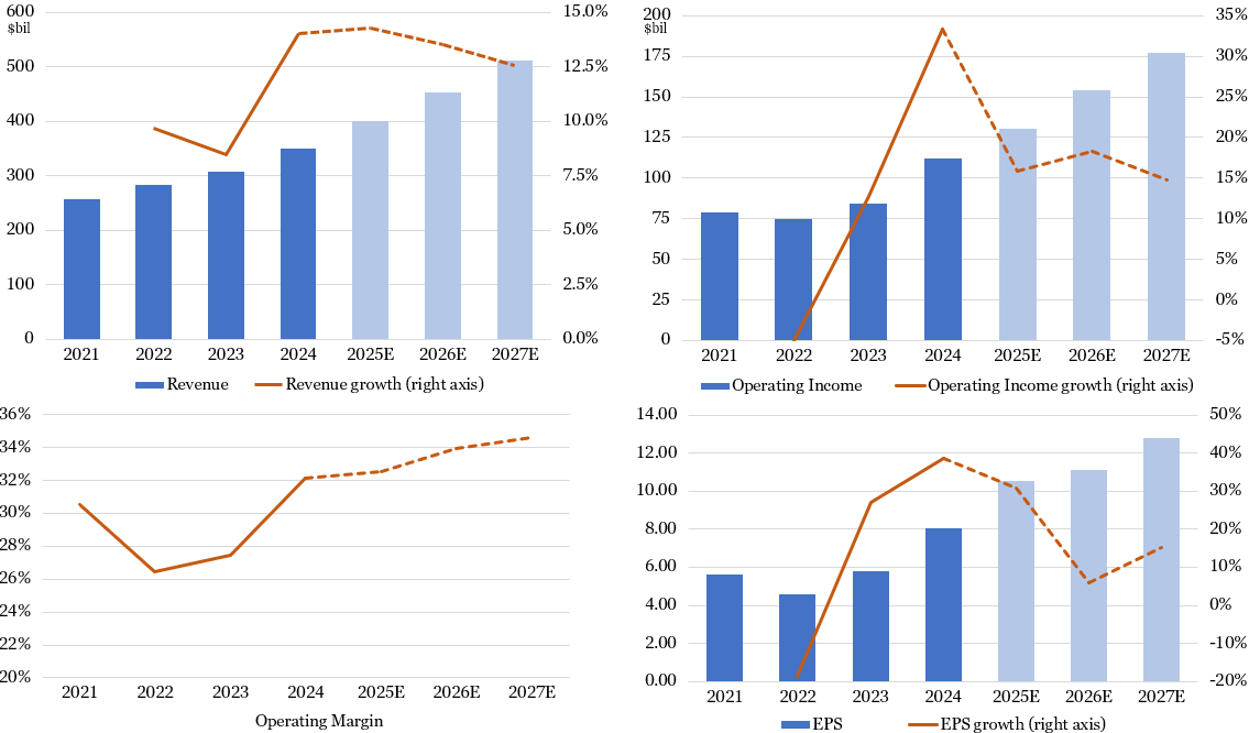Sources: Company filings (historical results), Koyfin (analysts’ consensus estimates), Glass Lake Wealth Management