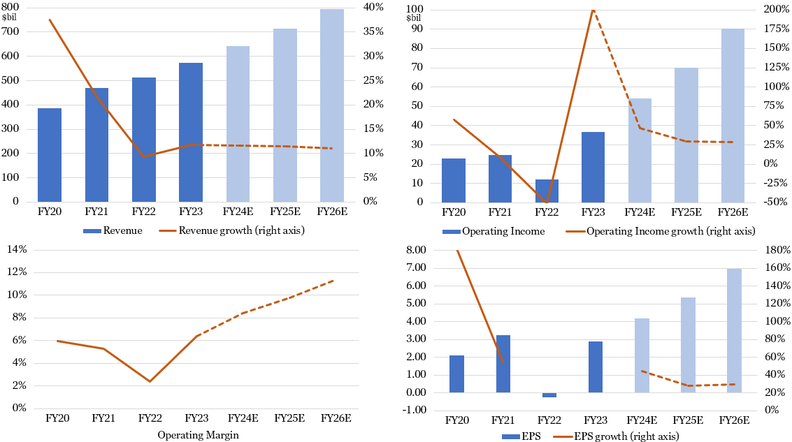 Sources: Company filings (historical results), Koyfin (analysts’ consensus estimates), Glass Lake Wealth Management